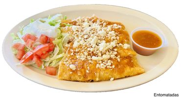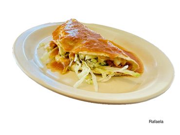 WE START WITH CHEESE, YOUR CHOICE OF MEAT, CILANTRO, ONIONS, LETTUCE THEN DRENCHED IN A SPECIAL TOMATO SAUCE. DELICIOUS!!